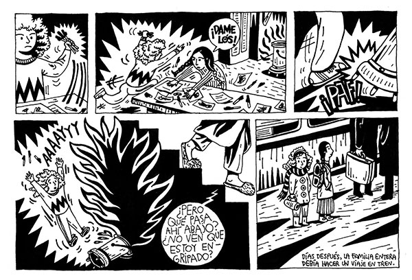 El trabajo está resuelto en un campo gráfico de ratio largo en posición apaisada. Este formato y esa disposición invitan al desarroollo gráfico narrativo que impone una lectura secuencial de izquierda a derecha.