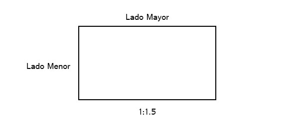 Estos tres rectángulos no presentan las mismas posibilidades compositivas ¿a qué se debe?. Fundamentalmente a la relación de medidas entre sus lados. Denominada también ratio (tomar las medidas del lado vertical y luego el horizontal. El menor de ambos valores sera la unidad y el otro el cociente entre el lado mayor y el menor.